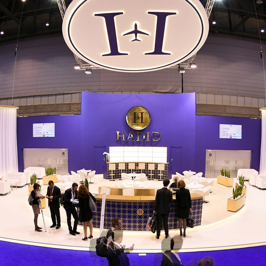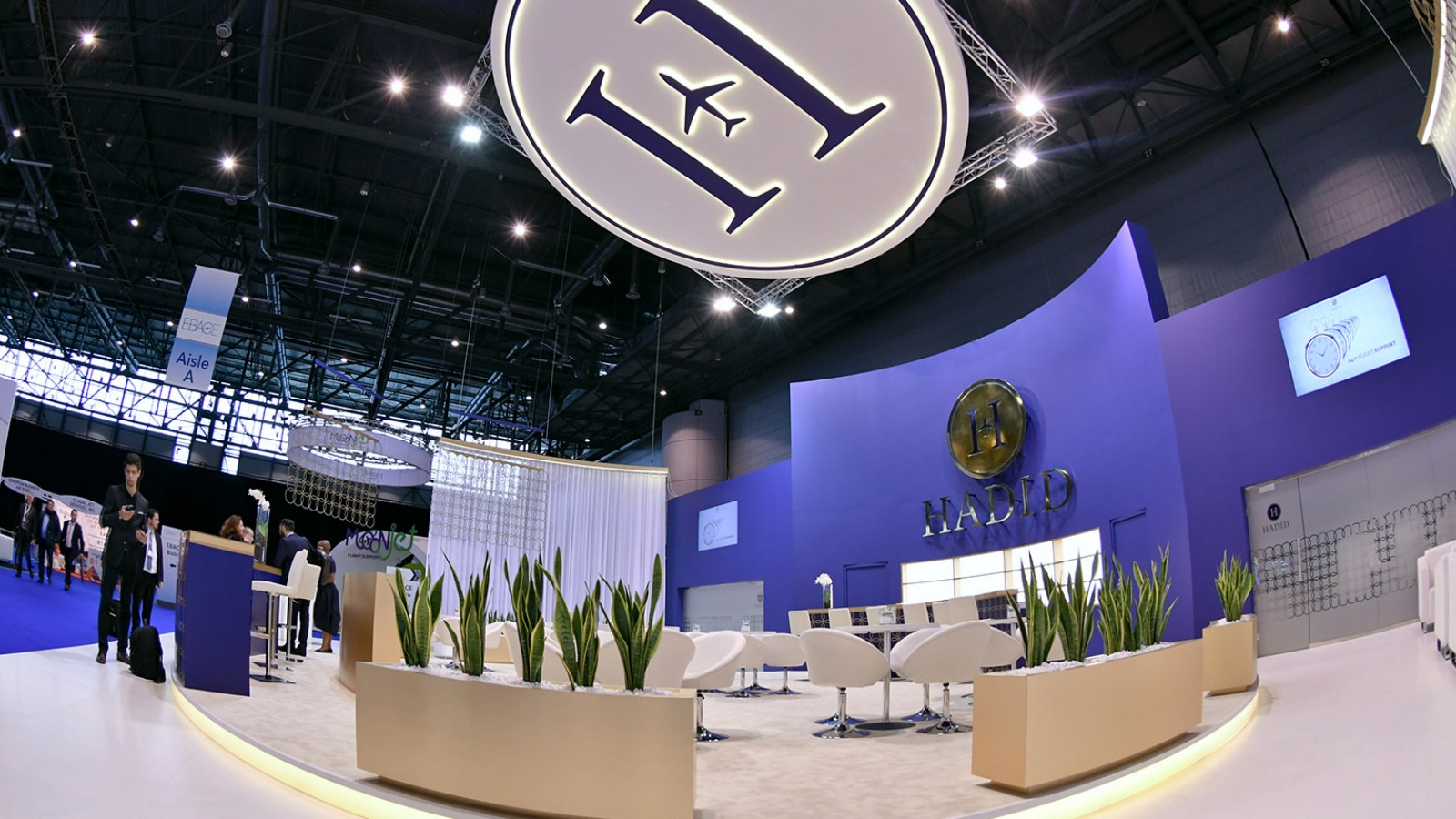 Designed by Van Hagen Hadid EBACE 2016 Geneve Scroll to take a tour 315 total amount of exhibition space Details 36sqm size logotype hanged to the Hall Ceiling 5m long curtains with LED lights Brand New Corporated Design